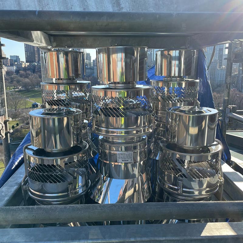Large commercial boilers require special vents. Best Chimney Services can supply and install the required venting, either inside an existing masonry chimney or stack, or though a separate stack, as well as the lateral chimney connectors or breeching.