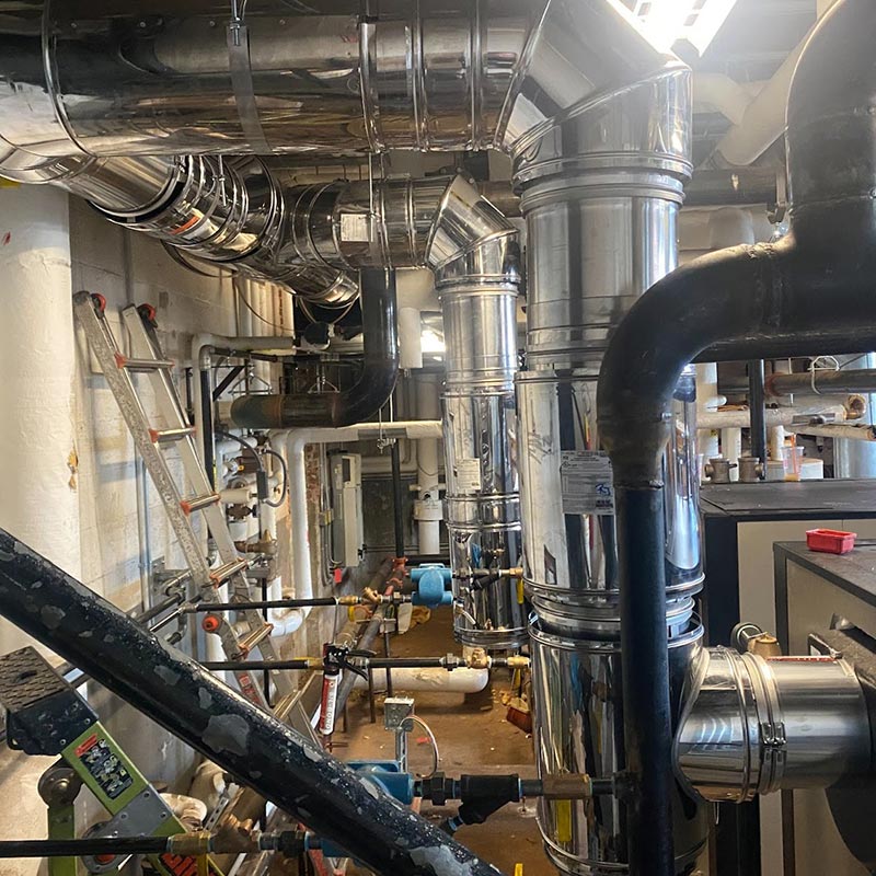 There are several different types of venting; Air cooled, single wall pressure stack (PSW), Type-B, Double Wall Insulated, cPVC and Polypropylene to name a few. We work closely with boiler manufacturers and engineers to make sure the appropriate materials are chosen for efficient operation.