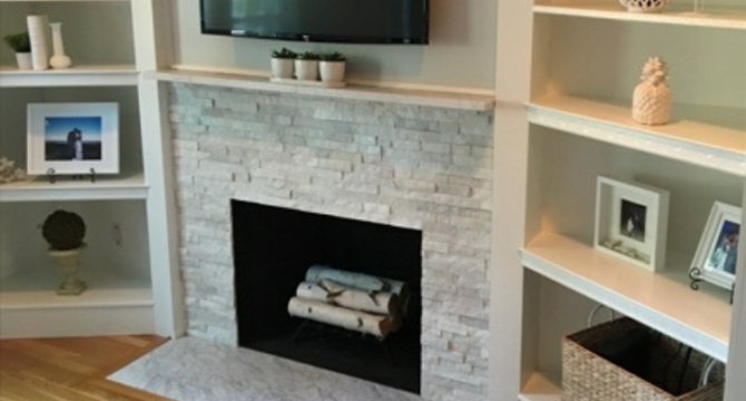Revitalizing your fireplace has never been simpler. Ledger panels offer an easy and stylish way to refresh old brick, giving your fireplace a brand-new look. These panels come in various textures and colors ensuring you can choose the perfect aesthetic to complement your home’s style. Quick and easy to install makes this a great choice when you don’t want to commit to construction.  Want to add to your statement?  Extend the surround all the way to the ceiling for a bold new look.  Transform your fireplace effortlessly with the versatility of ledger panels.
