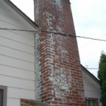 White discoloration on a chimney is called efflorescence. Efflorescence is an indication of excess moisture in the masonry. If it isn’t addresses with promptly, it will definitely expedite deterioration of the chimney.